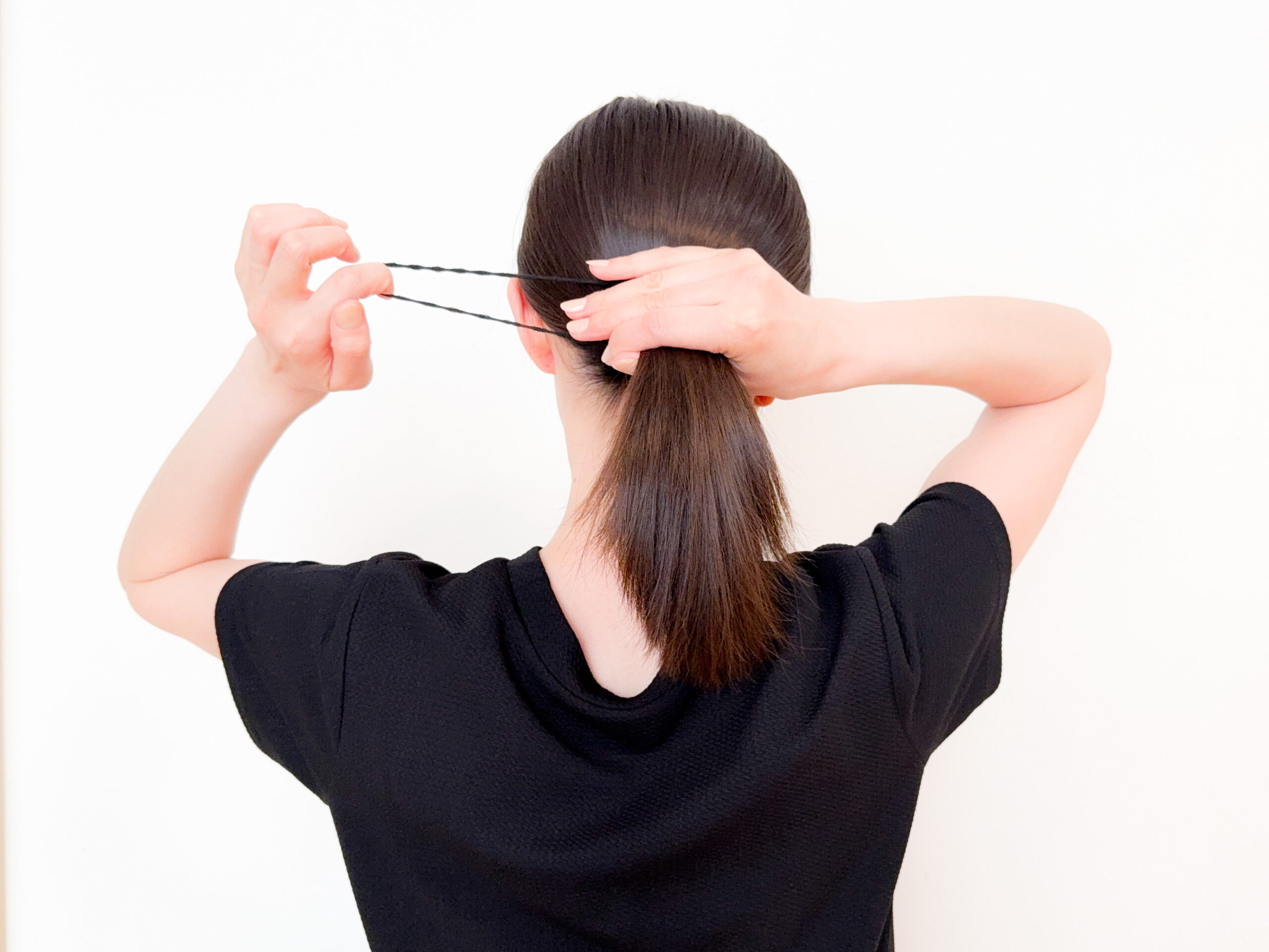 ・結ぶ時は、根本から伸ばすように引っ張ってスプリングゴムで結びます。その際はあまりきつく縛らないようにしています。